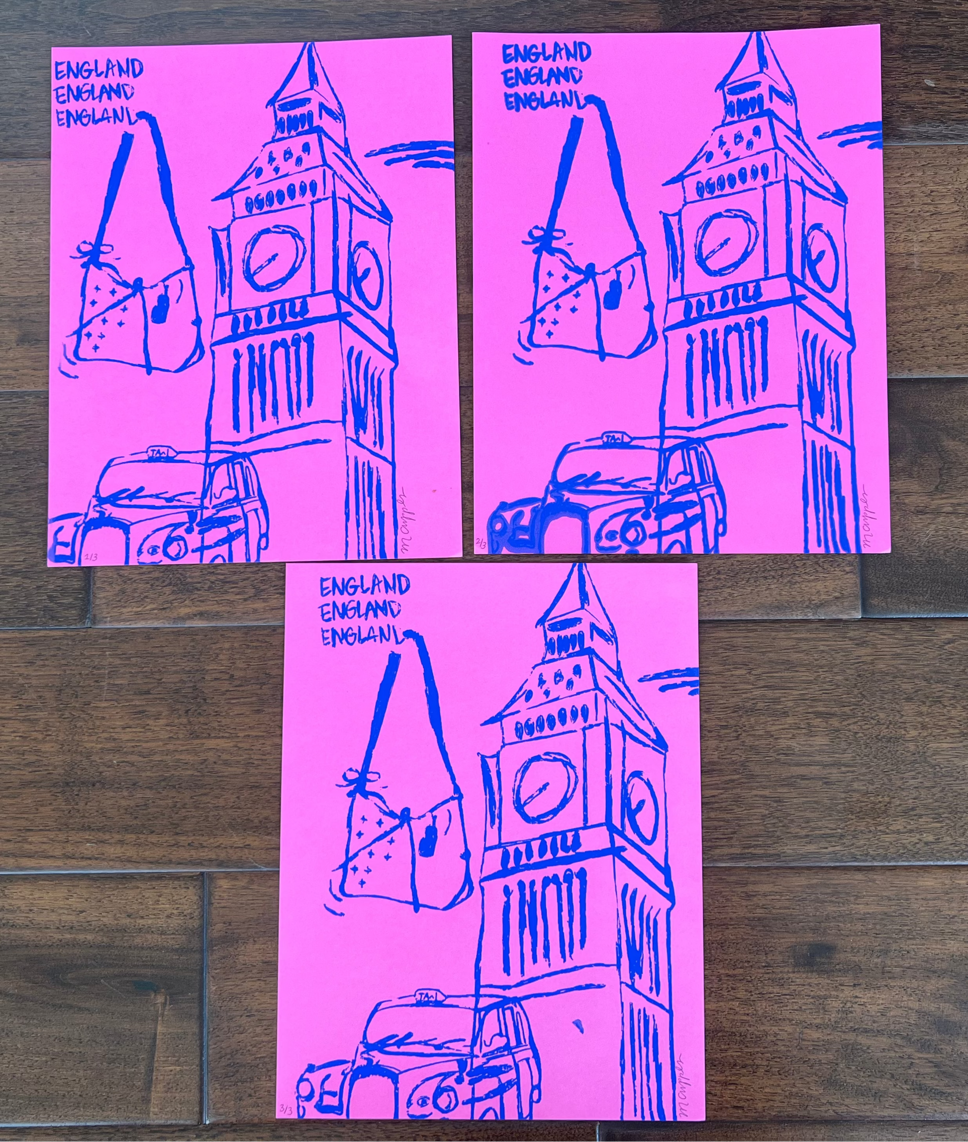No.3: Edition 3/3. Small smudge at the bottom of Big Ben. Size 8.5"x11"
