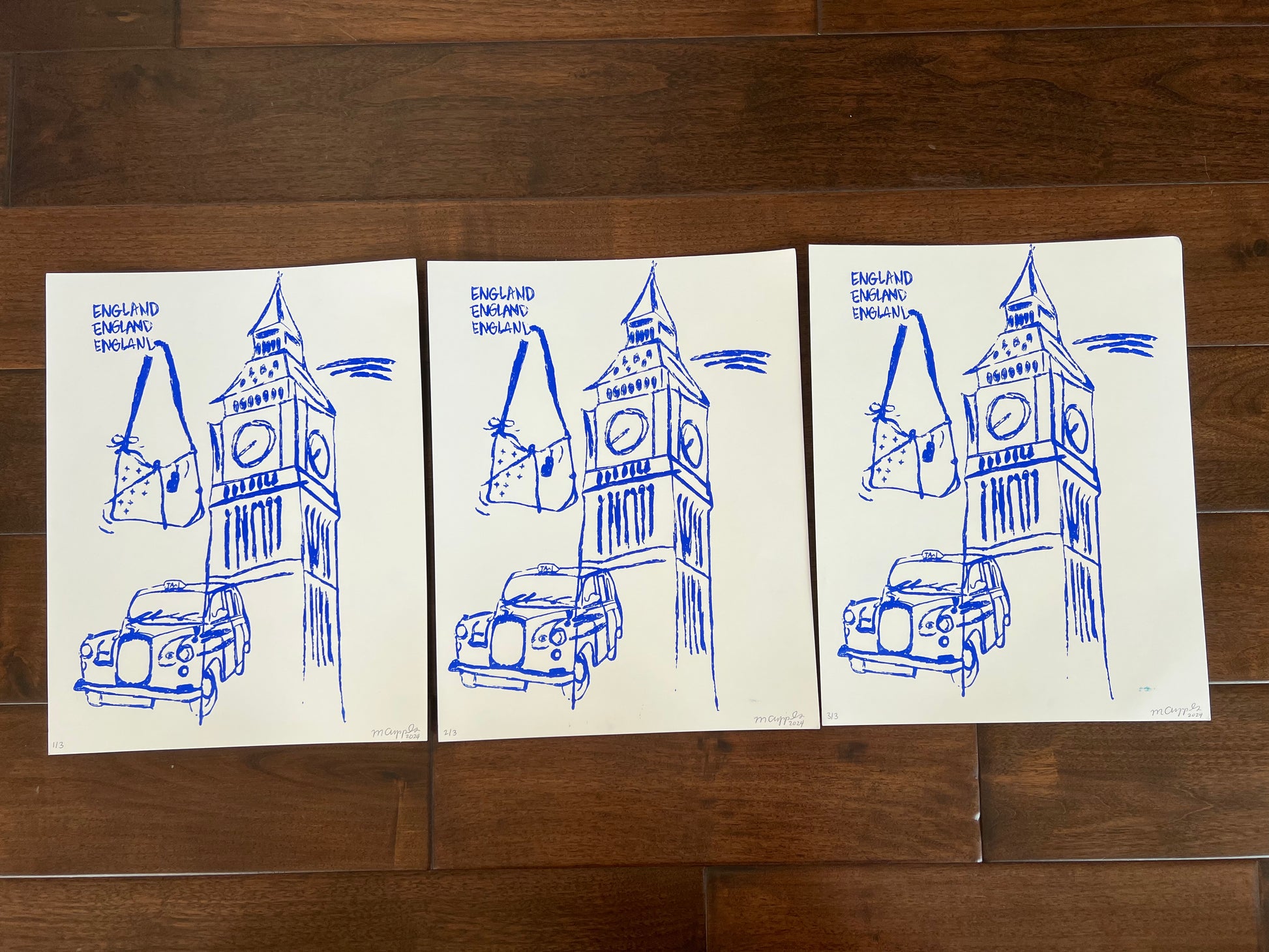 These are hand printed, screenprints. Each are signed and editioned on the front, as well as signed, dated, and titled on the back. Each print will come unframed. This print will be rolled when shipped.